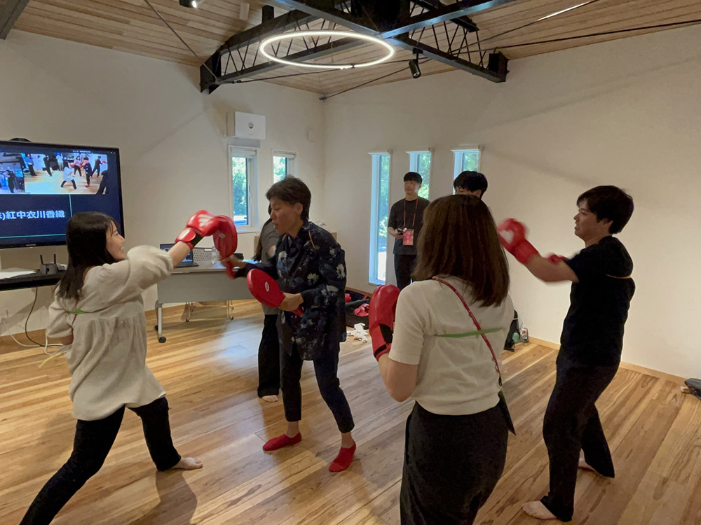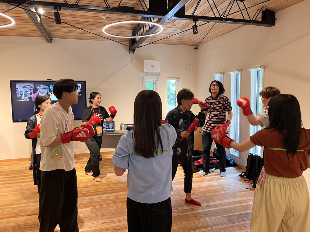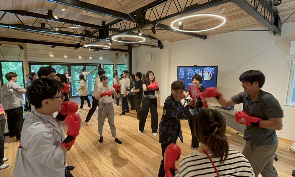 ボクシング体験という実践型の研修を通じて、楽しくトレーニングをしながら仲間とのコミュニケーション活性化をはかり、講師よりメンタル管理方法等を学びます。(元ボクシングチャンピオンの専属講師による研修/株式会社アスリート式)