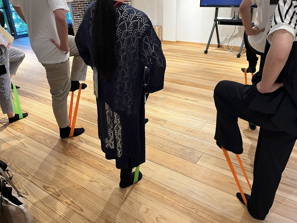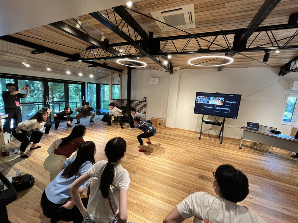 かなり負荷の高い動きですが、取材時は2回目の研修で、1回目の研修から「キュオリズム」アプリで日々の運動が継続していた方がほとんどだったので、みなさんしっかりと講師の動きについていけていました。