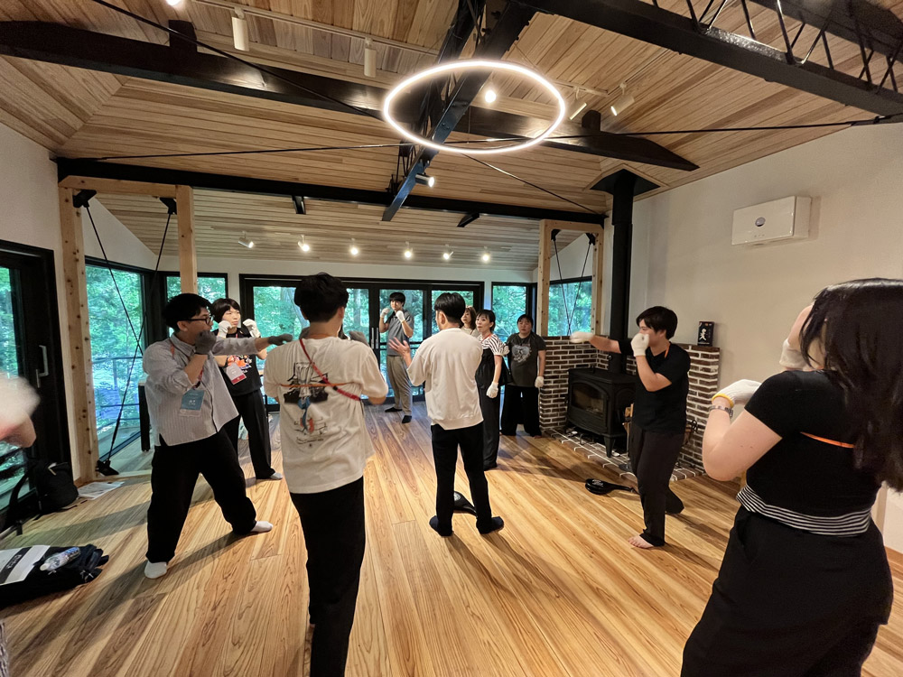 ボクシング体験研修の後は、講師よりメンタルケアのお話があり、この日の研修は終了しました。自然に囲まれたオフィスで行う研修、みなさん楽しみながらいきいきと体験されていました!